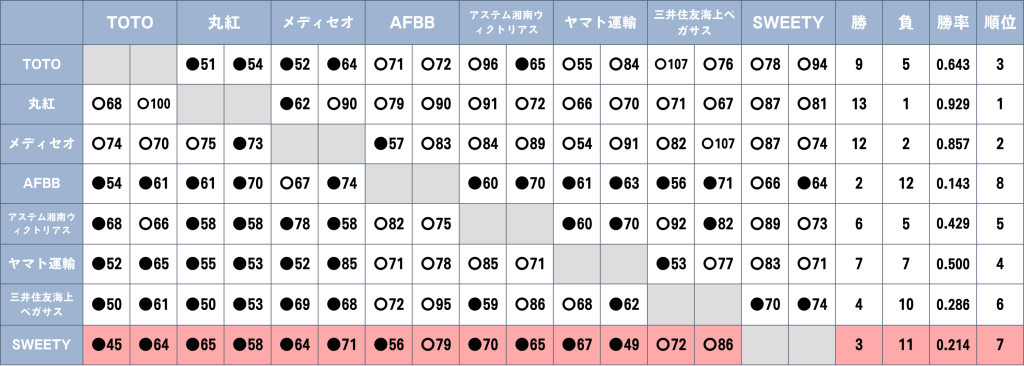 | 12月14日 | アステム湘南 65-73 | LOSE YouTube🔗 |